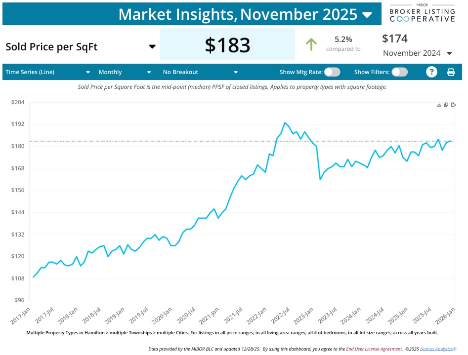 Interestingly, buyer volume was down. This dynamic helped bring the market into better balance, which actually makes for a better-functioning marketplace. The number of potential buyers, as measured by showings and offers, is lower than in the prior few years. Our opinion as to why is two-fold. Many buyers found a home in 2023-2024, and many simply gave up looking due to a lack of success. These buyers had given up, not because they did not see a home they wanted. Many buyers found they simply could not compete with what it took to acquire a home. While this is unfortunate in 2025, it may actually be a positive for 2026.