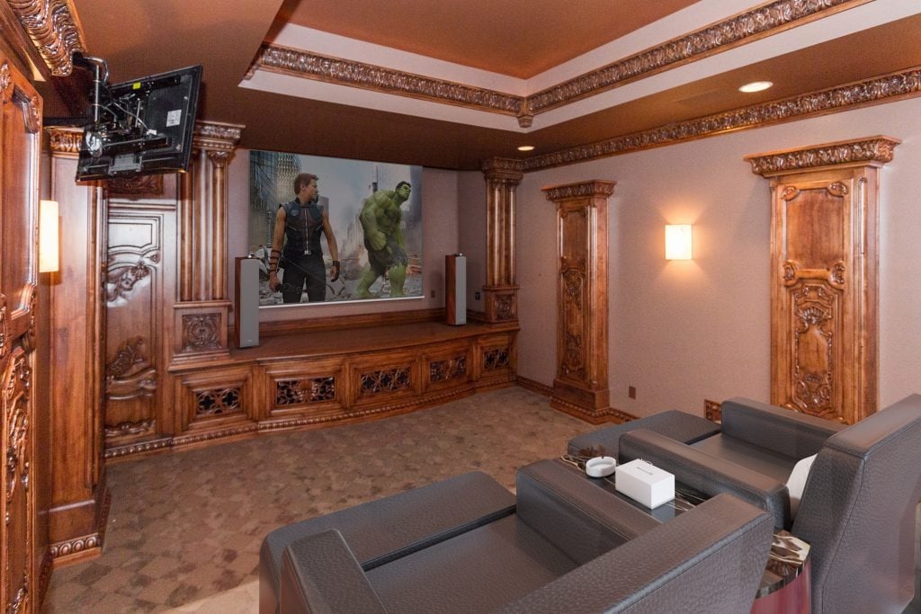 However, perhaps the most exclusive feature of the home is found tucked away in the lower level. The Home Theater is unique, with a custom performance stage. The craftsmanship and woodwork are phenomenal. No photo will do it justice. Whether your family wishes to perform a concert, play, or just a karaoke party, this stage is designed for your enjoyment. It is also the perfect environment to enjoy your favorite movie or sporting event on the giant screen.